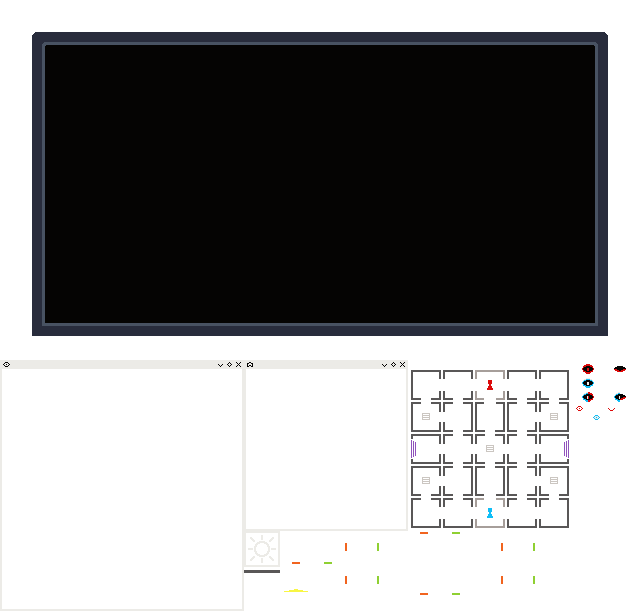 Rozsvěcení a zhasínání světel, sprity pro místnosti, indikátory rozsvícených světel, po konci hry je hráč vrácen do hlavního menu